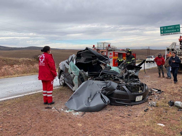 Chihuahua.- Una persona quedó atrapada con heridas de consideración al interior de su vehículo, luego de impactar el vehículo que conducía en la parte trasera de un camión de plataforma.