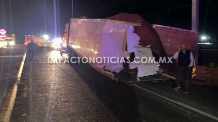 Camargo.- Se registró un accidente vial de tipo choque en el crucero de Los Silos, provocado por un tráiler de la marca MADC Speed S. A. de C. V., con número económico 5302, de color amarillo que transportaba una caja seca de color blanca.