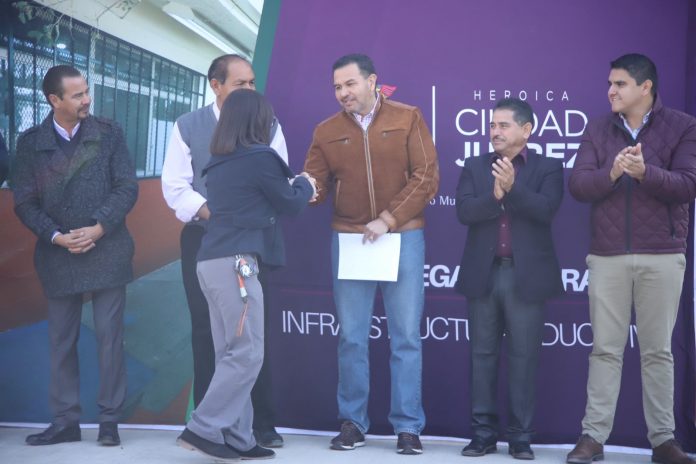 Ciudad Juárez.- Los estudiantes y maestros de la Escuela Secundaria Técnica 15, ubicada en el fraccionamiento Colinas de Juárez, agradecieron al Presidente Municipal, Cruz Pérez Cuéllar, por los trabajos de rehabilitación que se entregaron esta mañana, mismos que beneficiarán de manera directa a más de 500 alumnos.