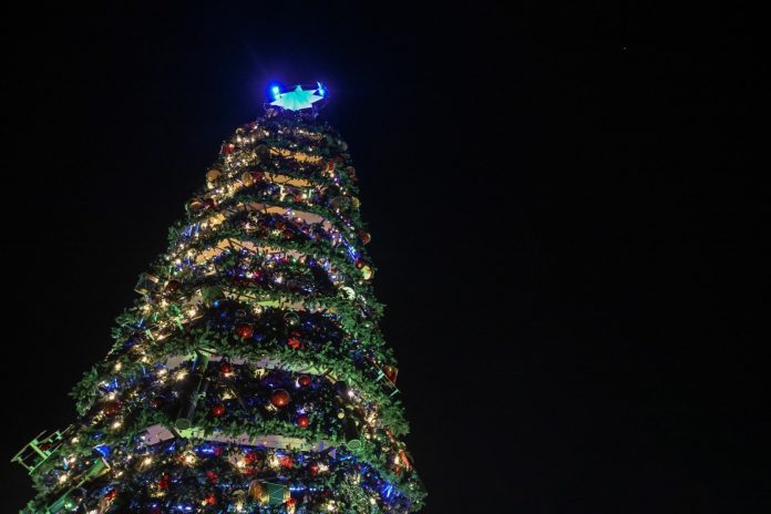 Ciudad Juárez.- Ante más de de 30 mil asistentes, la presidenta del DIF Estatal, María Eugenia Galván Antillón y el representante del Gobierno del Estado en Ciudad Juárez, Óscar Ibáñez, encabezaron la ceremonia del encendido del Árbol de Navidad, en las instalaciones del Parque Central.