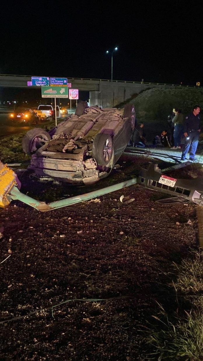 Se trata de un automóvil de la marca Nissan, línea Máxima de color gris, con placas de circulación PMN -666 C, cuya unidad quedó con el solo hacia abajo y los neumáticos para arriba sobre el camellón.