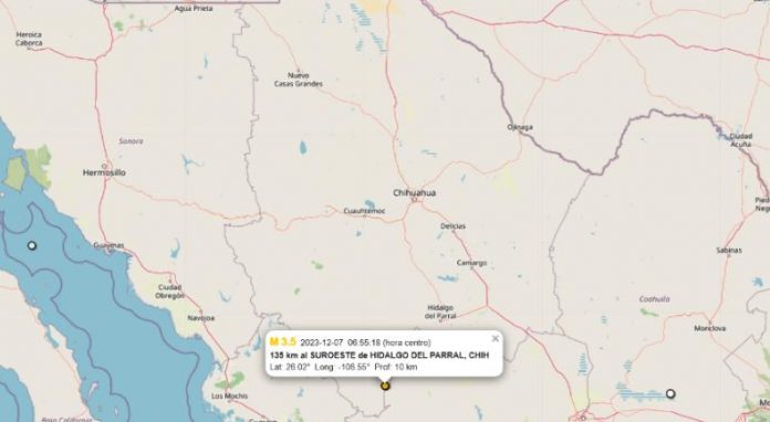 Como referencia, el SSN señaló que su epicentro estuvo a 135 kilómetros al suroeste de Parral, en Latitud 26.02º y Longitud -106.55. a una profundidad de 10 kilómetros.