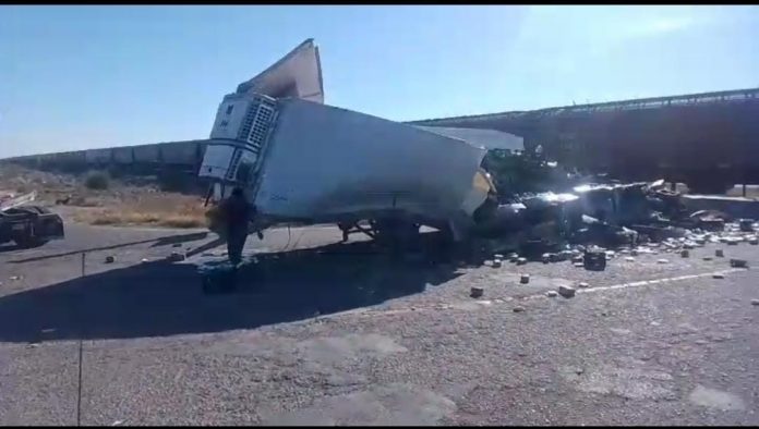Saucillo.- Un choque entre el tren y un camión de carga se da en el entronque de la 45 y Conchos, hace unos minutos.