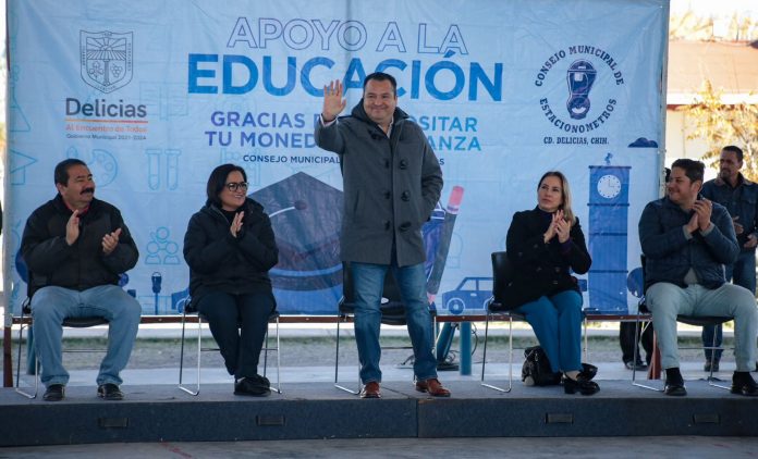 Delicias.- Con la intención de abonar al objetivo de dignificar a la educación, el Presidente Municipal, Jesús Valenciano, mediante el consejo de Estacionómetros Delicias, atendió la solicitud de los padres de familia de la primaria Glorias del Deporte para financiar los uniformes de la Escolta y Banda de Guerra de la institución.