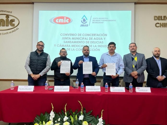 Delicias.- En un trabajo en conjunto para fortalecer la cooperación entre instituciones y contribuir al beneficio de la sociedad, la Junta Municipal de Agua y Saneamiento (JMAS) de Delicias, ha formalizado un convenio de colaboración con la Cámara Mexicana de la Industria de la Construcción (CMIC) Chihuahua.