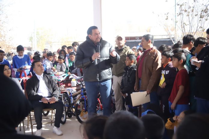 Ciudad Juárez.- El Presidente Municipal, Cruz Pérez Cuéllar, participó en la posada de Espacios Públicos de los Centros Comunitarios, llevada a cabo en el parque Parajes del Sur, en un evento que congregó a numerosos niños, niñas y jóvenes que disfrutan de las instalaciones deportivas en este lugar.