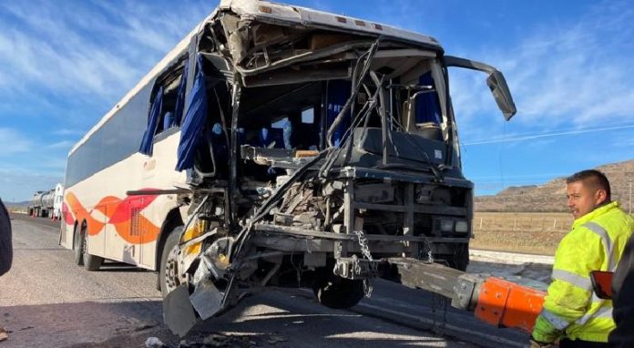 El accidente ocurrió cuando el camión de pasajeros con número económico 204, de la empresa Autobuses Rápidos de Delicias, chocó contra un camión rabón que iba cargado 12 toneladas de leña de pino.