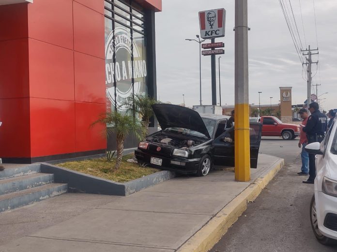 Delicias.- Dos vehículos se vieron involucrados en un aparatoso choque así como las instalaciones de KFC.