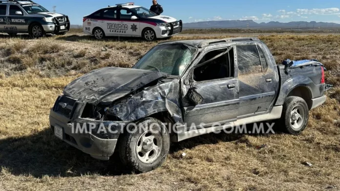 Camargo.- Fue en el kilómetro 85 de la carretera de Camargo a Delicias que hace unos momentos se dio una volcadura.