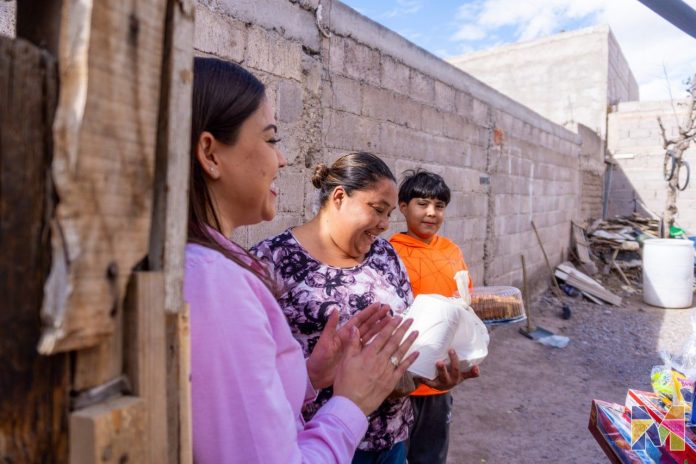 Pollo asado, tortillas, salsa, refresco, rosca de nuez, despensa, dulces y juguetes, es lo que fue entregado a las familias que más lo necesitan, en cabecera municipal y comunidades como Nuevo Loreto, Lázaro Cárdenas, Potrero del Llano, El Torreón, La Chávez, Santo Niño, San Lucas, entre otras.