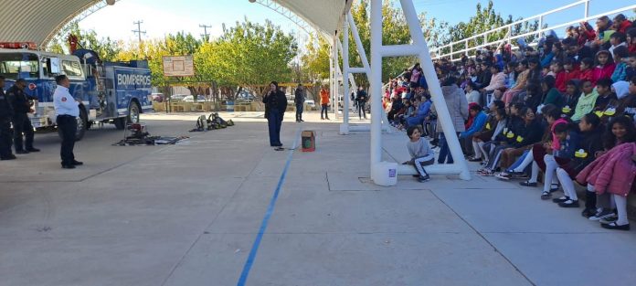 Meoqui.- “Quiero ser bombero”, es una de las respuestas que muchos niños dicen cuando les preguntas que quieren ser de grandes, por lo cual el departamento de Bomberos y Protección Civil de Meoqui inició con pláticas informativas sobre su trabajo en la Escuela Primaria Sector Obrero de Meoqui, mismas que continuarán este 2024 en las distintas instituciones educativas, brindando información sobre las tareas que realizan, con el objetivo de que los niños y niñas conozcan desde pequeños el desempeño de la corporación.