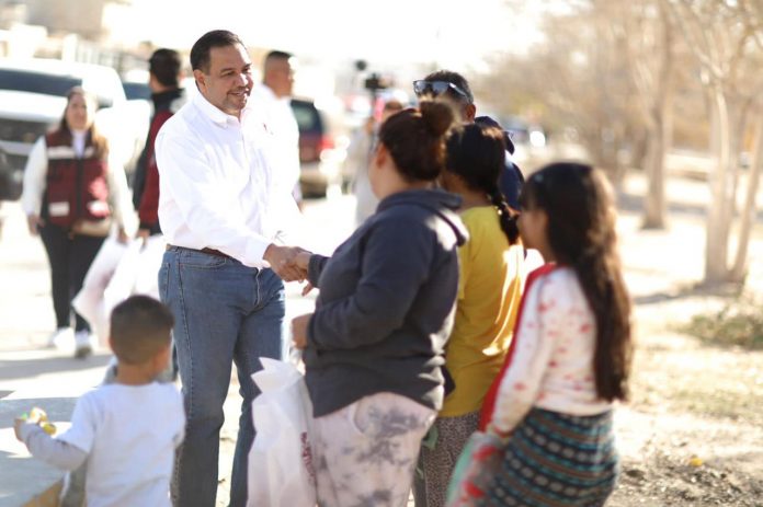 CIUDAD JUÁREZ.- Con la convicción de mantener un gobierno cercano a la gente, el Presidente Municipal, Cruz Pérez Cuéllar, acudió al fraccionamiento Hacienda de las Torres para hacer la entrega de juguetes y cobijas a los vecinos del sector.