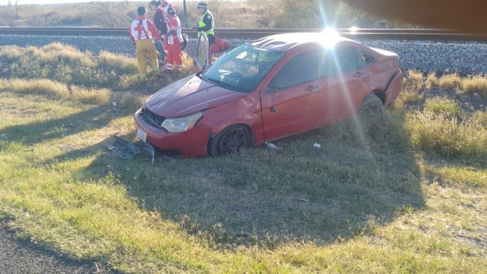 La tarde de este jueves, elementos de Cruz Roja atendieron la volcadura de un vehículo Ford Focus en color rojo modelo 2006 con placas del estado de Chihuahua, que era tripulado por 3 menores y una mujer.