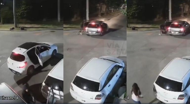 Los sujetos pararon metros más adelante, uno de ellos bajó y abrió la puerta trasera para arrojar al suelo el portabebé con la pequeñita, luego se subió y de nuevo se fueron.