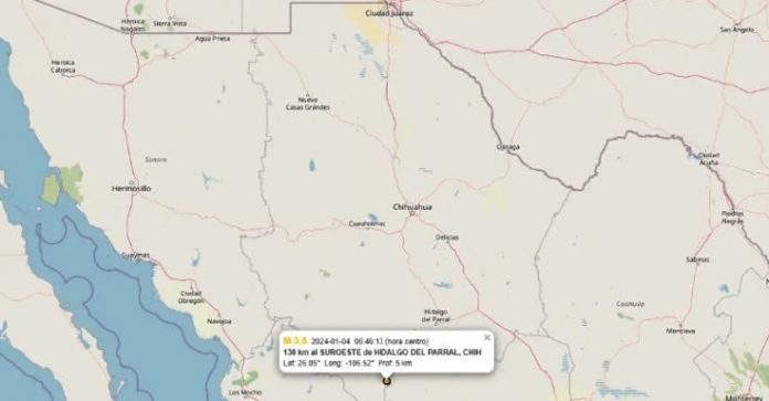 El movimiento telúrico ocurrió a las 6:46 a.m. de jueves, 4 de enero, con una profundidad de 5 kilómetros, dentro del municipio de Guadalupe y Calvo, en las inmediaciones de la mina San Julián.