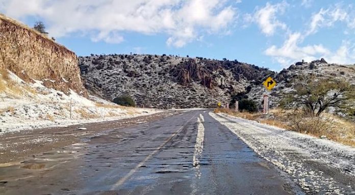 Chihuahua.- La caída de aguanieve en Janos, Ascensión y Ciudad Juárez provocó el cierre de la carretera a Agua Prieta, a la altura del tramo Puerto San Luis, lo anterior debido a que se cristalizó el pavimento, a esta hora de la mañana permanece aún sin acceso, informó Protección Civil.
