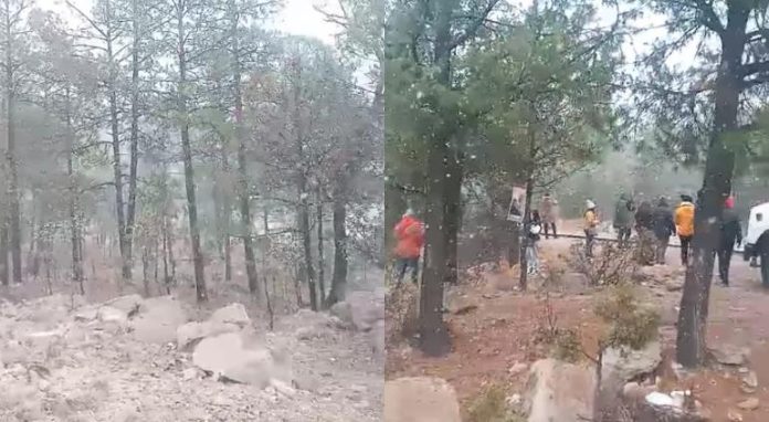 En redes sociales compartieron videos de la nevada de esta mañana en las Barrancas del Cobre.