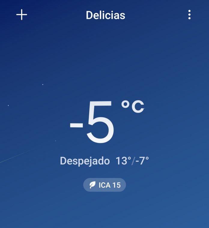 Durante los primeros minutos de este martes 9, los valores en el termómetro llegaron a -5 grados Celsius con una sensación térmica de -6 grados. Sin embargo, se espera que podría bajar hasta -7°.