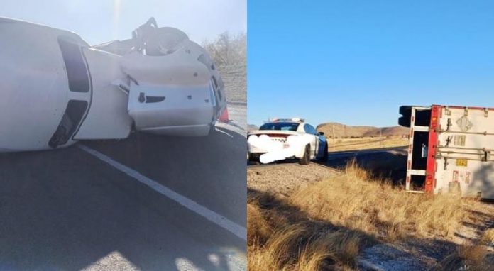 Chihuahua.- Dos trailers volcaron en el kilómetro 82 de la carretera Chihuahua-Juárez, en incidentes que podrían haber sido desencadenados por los intensos vientos que azotan la región. Las ráfagas, que alcanzan velocidades de hasta 75 kilómetros por hora en el municipio de Chihuahua, han generado condiciones peligrosas en las carreteras, resultando en estos dos accidentes.