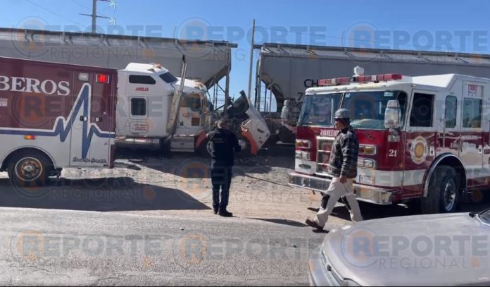 Delicias. – Otro accidente con el tren se suscitó esta tarde en el cruce ferroviario del puente de Cielo Vista, donde el conductor de un tráiler intentó ganarle el paso al ferrocarril.