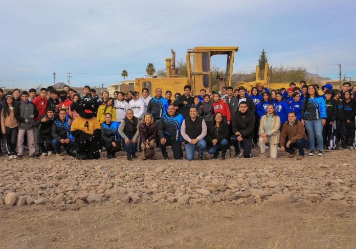Delicias.- Cerca de 600 alumnos serán beneficiados con la construcción de canchas de futbol soccer, gradas y andadores en la escuela secundaria técnica 3014, la finalidad es que ellos también cuenten con instalaciones dignas, así lo dio a conocer el alcalde Jesús Valenciano, esta mañana durante el arranque de obra.