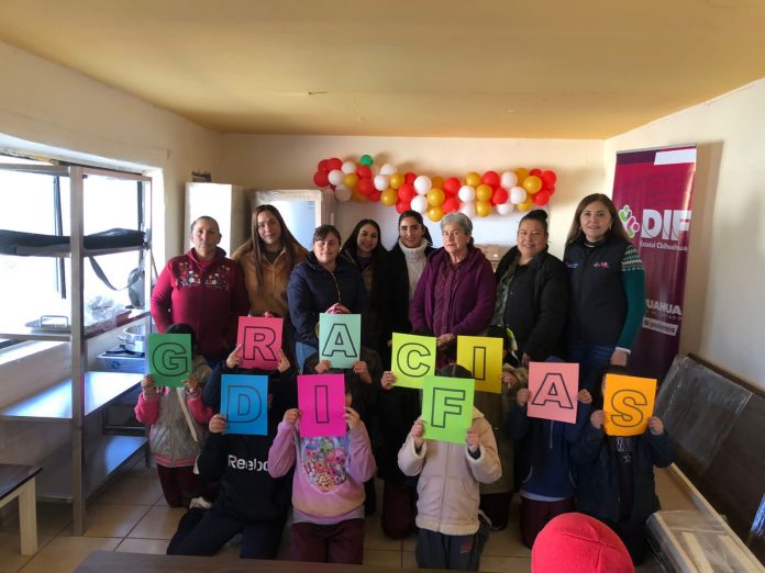 Julimes.- El DIF Estatal hizo entrega de equipamiento y artículos de cocina para el comedor escolar de la primaria Club de Leones, ubicada en la comunidad de La Regina, en el municipio de Julimes, con una inversión de 94 mil 199.99 pesos