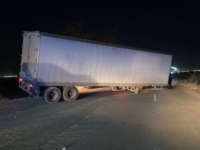 Chihuahua.- Un tráiler de la empresa Abastecedora Comercial sufrió un accidente vial al intentar dar una vuelta en “U” sobre la avenida Equus, lo cual provocó que se desprendiera el remolque que cargaba obstruyendo carriles de la avenida.