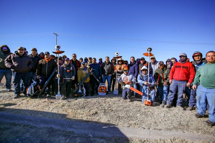 Delicias.- Durante los trabajos de limpieza que se están realizando en el dren ubicado al oriente de la ciudad, el Alcalde Jesús Valenciano, realizó la entrega de equipo al personal de servicios públicos municipales, especificamente a cuadrillas de limpieza, este material equipamiento consta de 3 desmalezadoras, 3 sopladoras, una motosierra eléctrica, tijeras de poda, palas, rastrillos y horcas, esto con la finalidad de eficientar los trabajos que se realizan en la ciudad, el edil agradeció por la gran labor que realizan, “reconocerles la chamba que ustedes hacen, sabemos que es la más