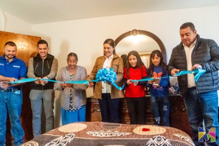 Meoqui.- “Este es un ejemplo más del tipo de obra que hacemos desde el Gobierno Municipal que transforma la vida de las personas”, así lo dijo la alcaldesa de Meoqui Miriam Soto, tras realizar la entrega de la rehabilitación del cuarto de la pequeña Celeste y su familia, en la comunidad de Potrero del Llano.