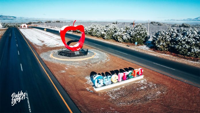 Pablo González Aragón tomó y compartió a través de redes sociales diversas fotografías del paisaje de la entrada al municipio de Guerrero, todo emblanquecido por las nevadas acontecidas el día de hoy.