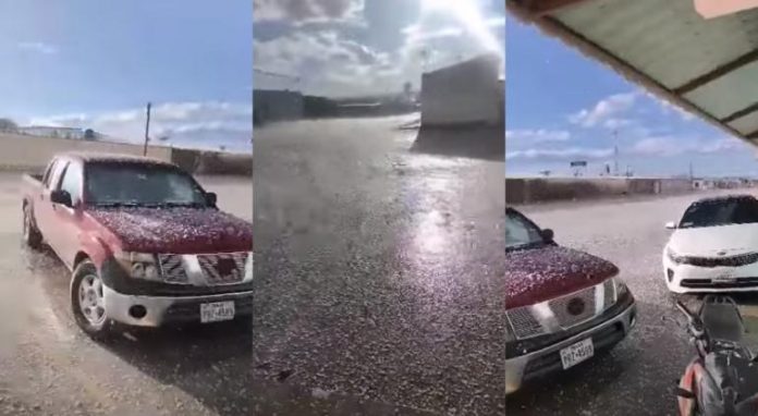 Ojinaga.- Por medio de redes sociales fue compartido un vídeo del fuerte granizo que azotó Ojinaga.