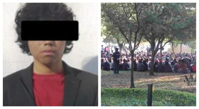 Fue identificado como Alfonso ‘N’ de 16 años de edad, portaba una máscara blanca y guantes rojos antes de cometer la agresión frente a los compañeros.