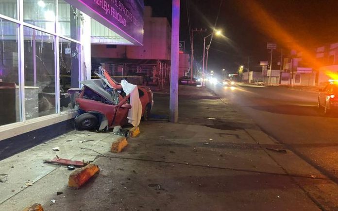 De acuerdo a la versión de la autoridad local, el accidente ocurrió cuando el automóvil era conducido por la avenida Morelos, en sentido de oeste a este, a una velocidad no precisada al llegar al cruce con la calle 33, el conductor perdió el control de la unidad, chocando contra el señalamiento gráfico de alto y luego contra un local de venta de ladrillo industrial.