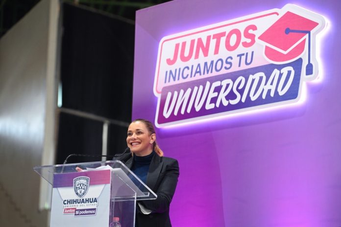 Chihuahua.- La gobernadora Maru Campos encabezó el arranque oficial de la entrega de apoyos del programa “Impulsando juventudes”, que en sus distintas vertientes contempla una inversión de alrededor de 50 millones de pesos (mdp), en beneficio de 14 mil estudiantes y madres jefas de familia.