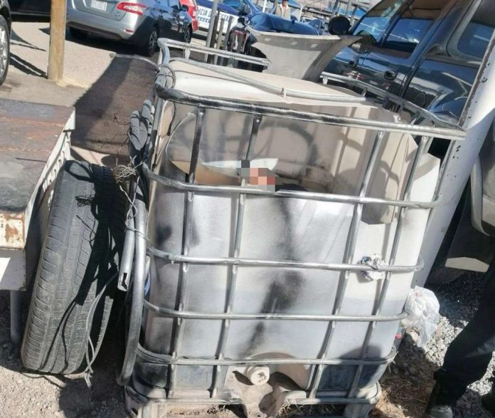 Por tal razón, tenía las esposas cuando terminó por introducirse en el contenedor de mil litros de agua, donde finalmente falleció.
