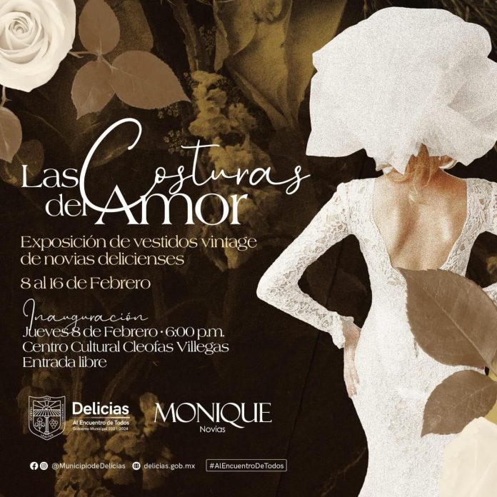 Delicias.- El Gobierno Municipal de Delicias a través de la coordinación de Cultura, invita a la exposición “Las Costuras del Amor” que exhibirá una colección de vestidos vintage de novias delicienses, algunos confeccionados por modistas de la época y otros adquiridos, que abarcan desde los años 50 hasta creaciones más recientes.