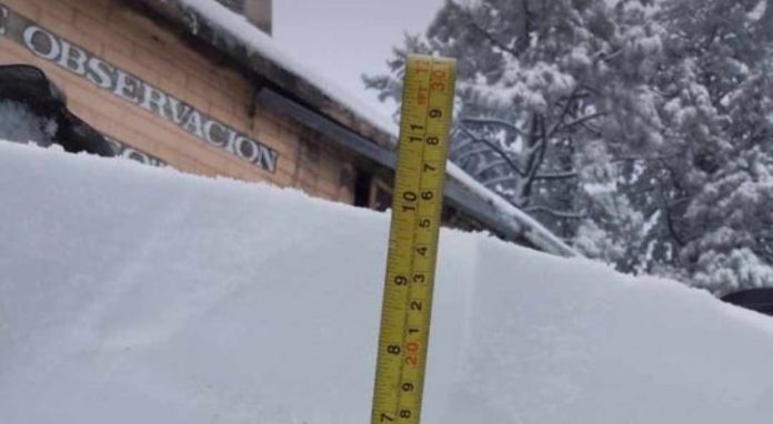 En una imagen se ve la cantidad de nieve que se juntó en Madera luego del paso del frente frío 33 y la Sexta Tormenta Invernal de la temporada.