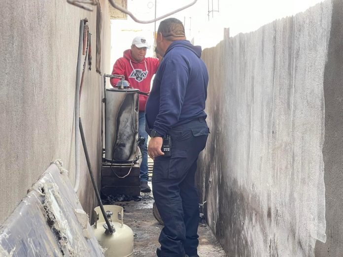 El flamazo fue provocado porque un tanque de gas de 30 kilos fuederribado por un perro, lo que causó la ruptura de la línea de cobre conectada a un bóiler, desatando un fuego que los residentes intentaron contener con cubetas de agua, sin embargo el fuego se propagó rápidamente, causando daños materiales.