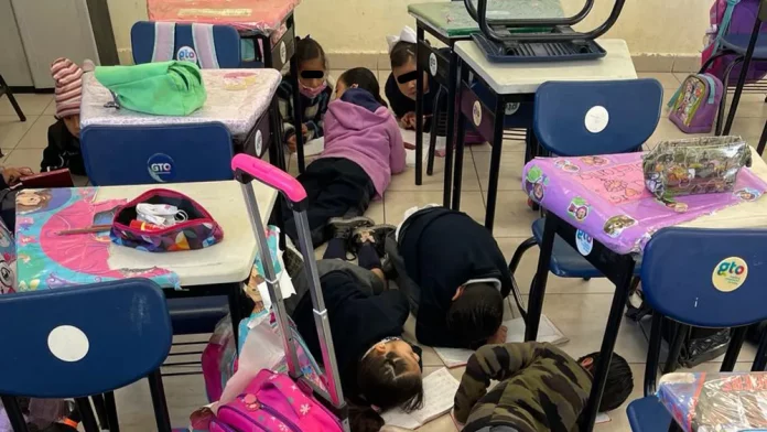 Celaya.- Alumnos de una escuela primaria en Celaya, Guanajuato, tuvieron que resguardarse pecho tierra al interior de sus salones al escucharse múltiples disparos.