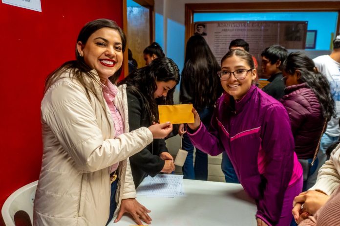 Meoqui.- La alcaldesa Miriam Soto realizó la entrega de los meses enero y febrero de las Becas de Convenio, Transporte y Económicas a más de 270 estudiantes universitarios del municipio, en donde se invirtieron más de 317 mil pesos con recurso meramente municipal.