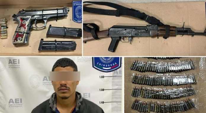 Chihuahua.- La Fiscalía Especializada en Operaciones Estratégicas capturó a uno de los líderes de un grupo criminal que operaba en la ciudad de Guerrero, Chihuahua, por los delitos de desplazamiento forzado y secuestro, asegurándole un arsenal.