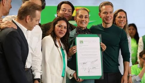 La presidenta Nacional del Partido Verde, Karen Castrejón entregó la constancia a Claudia Sheinbaum, y resaltó las acciones de la morenista al medio ambiente, durante su gestión como Jefa de Gobierno, por ejemplo, la plantación de más de 49 millones de árboles y el incremento del presupuesto asignado para el cuidado de áreas verdes y suelo de conservación de la Ciudad de México.