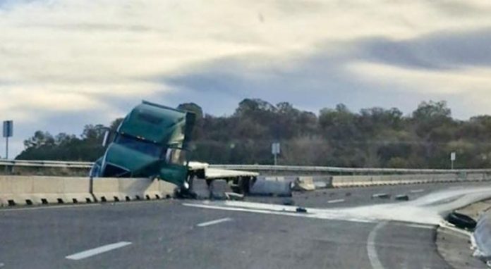 Como resultado, el tráiler quedó dañado en el sitio, además de que en los carriles del otro sentido quedaron trozos del muro en el suelo impidiendo también el tránsito de ese lado.