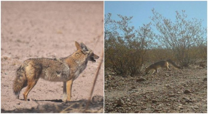 Rosales.- Fotógrafos compartieron las imágenes tomadas a un zorro gris y a un coyote, ambos en los lares de Rosales.