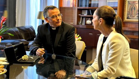 La candidata presidencial de la coalición “Sigamos Haciendo Historia”, Claudia Sheinbaum, le entregó al rector de la Basílica de Guadalupe, Efraín Hernández Díaz, la rosa de plata que fue bendecida por el Papa Francisco tras su visita al Vaticano.
