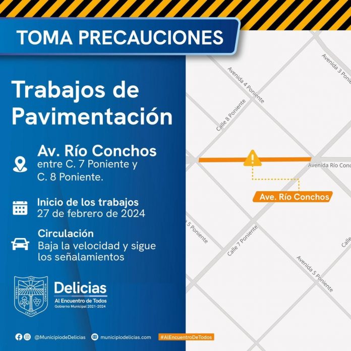 Delicias.- La Dirección de Obras Públicas del Gobierno Municipal de Delicias, informó que este martes 27 de febrero iniciará la rehabilitación vial en la avenida Río Conchos en el sector Poniente.