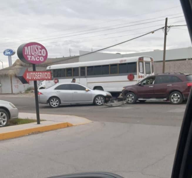 Delicias.- Dos vehículos colisionaron de frente en la calzada del charro y avenida ferrocarril al oriente de la ciudad.