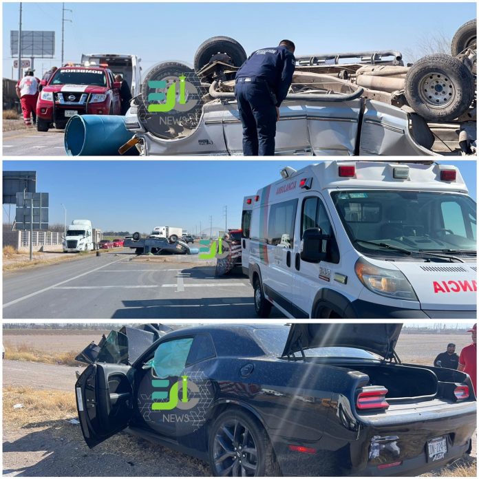Meoqui.- Dos automotores colisionaron en la vía federal 45, en el tramo Delicias a Meoqui.