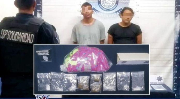 México.- La Policía Municipal de Solidaridad en Quintana Roo detuvo a dos personas en posesión de droga, una de ellas una mujer originaria del estado de Chihuahua.