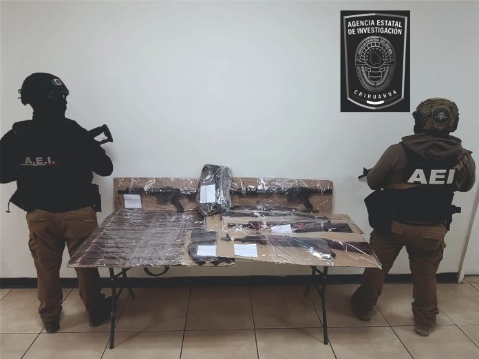 Chihuahua.- La El Grupo de Operaciones Tácticas de la Agencia Estatal de Investigación, adscritos a la Fiscalía de Distrito Zona Norte, aseguraron un vehículo abandonado en cuyo interior localizaron armas de fuego de largo alcance y casi un millar de cartuchos útiles.